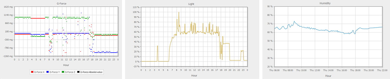 The unique EMX probe is designed for measuring surrounding environment. Probe can be connected to a GPS tracker only or it can work as a part of SmartBox. Probe scans and collects highly accurate data of temperature, humidity, air pressure, light intensity, impacts, 3D orientation and G-forces. Measured values are sent in real-time to servers where user can see them in form of interactive graphs, tables, and reports. Alerts for the variables can be set and system will send alert when the values of set variable go over set limits.
